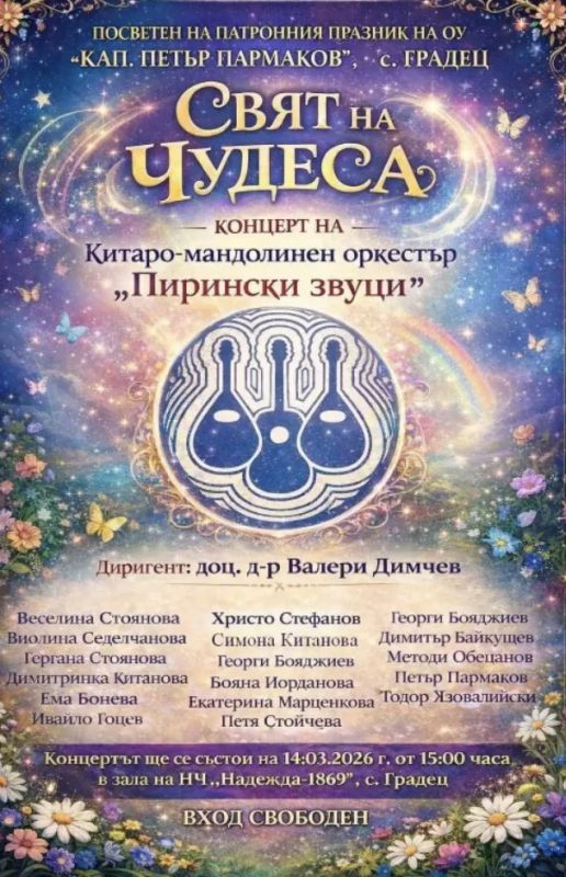 Събитието е под надслов „Свят на чудеса“ и ще бъде представено от китаро-мандолинния оркестър „Пирински звуци“ към Народно читалище „Никола Вапцаров“, гр. Благоевград, с диригент доц. д-р Валери Димчев.