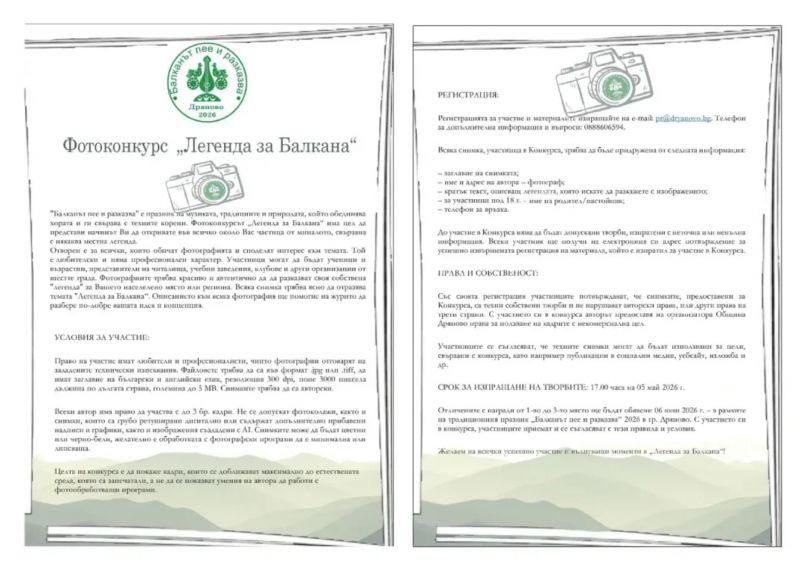 фотоконкурс „Легенда за Балкана“.