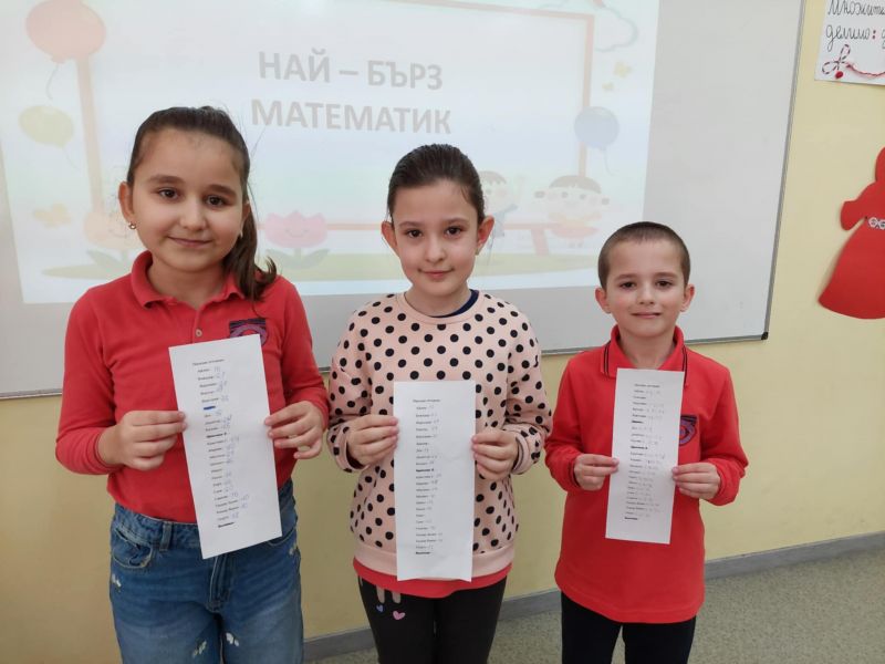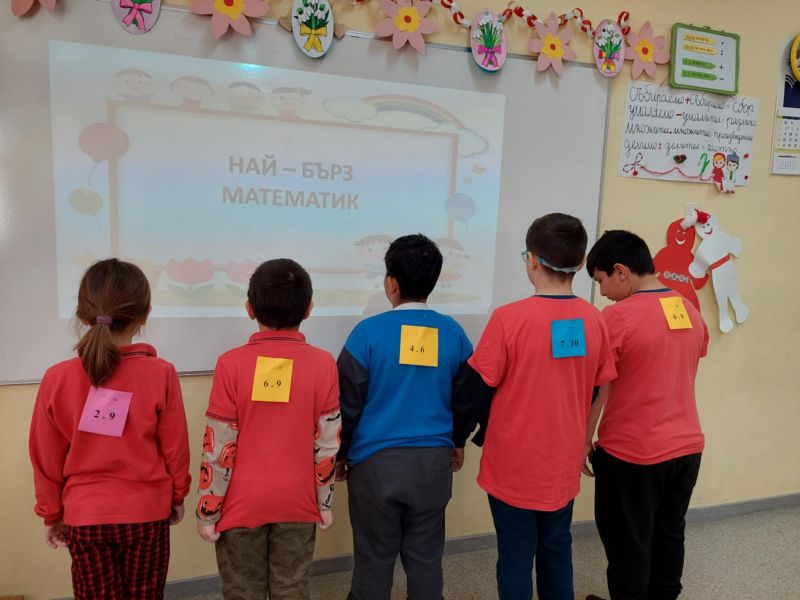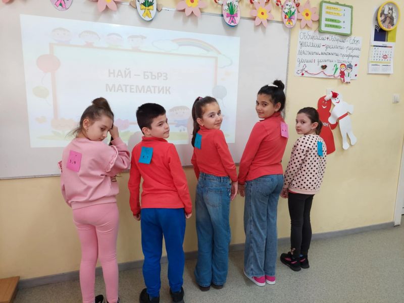 Днес, в часа по ИУЧ Математика учениците от 2. „а“ клас по интересен и забавен начин си припомниха таблицата за умножение до 7. Те участваха в играта „Бягащи задачи“.