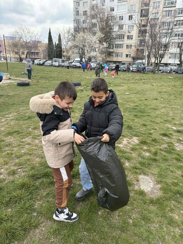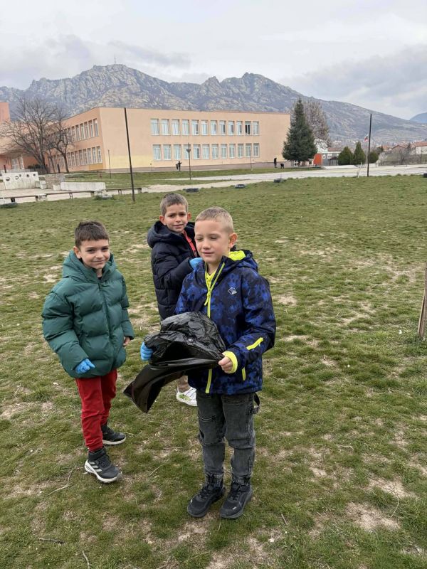 Дворът се изпълни с детски глъч и добро настроение. Въоръжени с ръкавици и чували, учениците с желание и отговорност почистиха пространствата около училището. Малките участници показаха, че възрастта не е пречка, когато има желание да се направи нещо добро – с усмивки на лицата и искрено старание те събираха отпадъци и се радваха на всеки малък резултат.