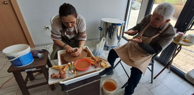Вчера, 20 март, поставихме финал на това успешно предизвикателство за всички нас, и стартираме нещо ново, интересно и занимателно, а именно работата с глина. Грънчарството е най-древната техника за моделиране на глина, а малко по-късно грънчарското колело доусъвършенства занаята. Всички тези умения можем уверено и смело с нужния професионализъм да ги предадем напред във вид на творчески ателиета за работа с грънчарско колело.