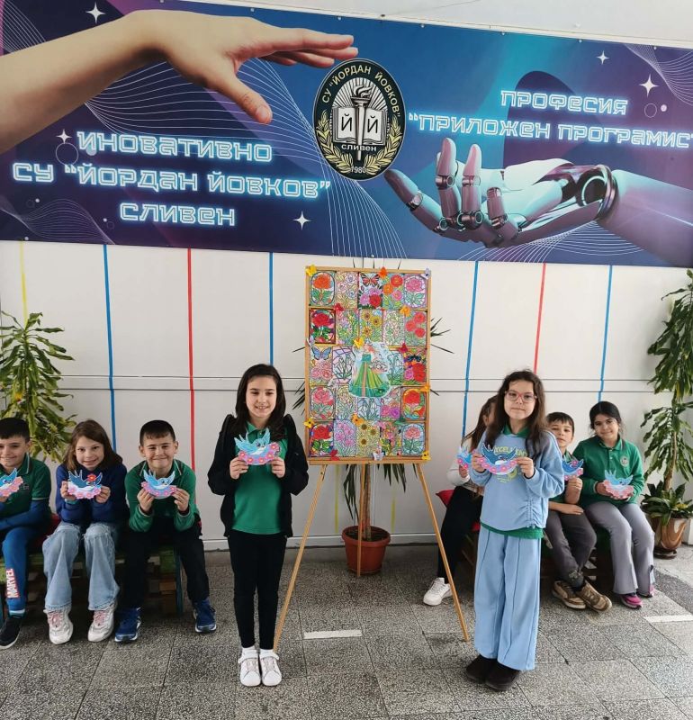 Своите творби децата представиха в малка изложба, която внесе пролетно настроение в училището.