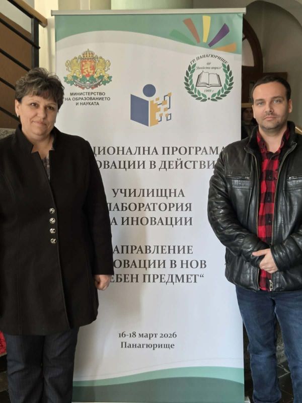 В периода 16–18 март 2026 г. екип от нашето училище участва в Училищна лаборатория за иновации по Национална програма „Иновации в действие“, Модул 4, проведена в ОУ „Двайсти април“ – гр. Панагюрище.